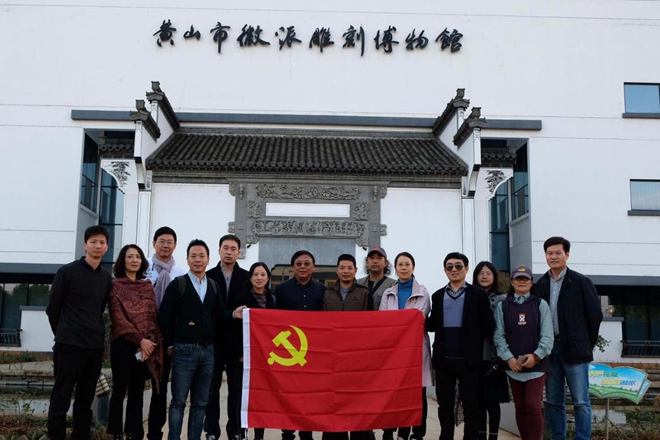 随后,支部一行人来到黄山市徽派雕刻博物馆参观学习,并与国家级非遗徽州竹雕代表性传承人、中国工美行业艺术大师洪建华老师及其夫人张红云老师进行了专业交流。支部党员与洪老师夫妇就非遗传承问题、测绘技术及有效性问题、非遗商业现状及发展趋势等问题进行了热烈的讨论。在经验的学习分享中,支部党员们感受到了一份来自徽派竹刻传承人的责任与坚持。他用实际行动仰望梦想,在生活困境中奋力起航。洪老师说:“雕刻不再仅仅是我的个人生活,我也肩负着展示和传播优秀非遗传承人作品、宣传好徽州雕刻的责任。”生活的艰辛不但没有令他踌躇不前,反而再一次拓宽了他生命的广度以及作为一位徽派竹刻传承人的艺术使命与人生价值。通过与传统手工艺大师进行直接的思维碰撞,让支部党员们对务实精神、奋斗精神和匠人精神有了更加深刻的理解;明确了作为共产党人,同时作为高校设计教育工作者,应更加负有责任,把艰苦奋斗、怀抱梦想、勇攀高峰、团结协作的优良传统精神贯穿到日常工作中去。