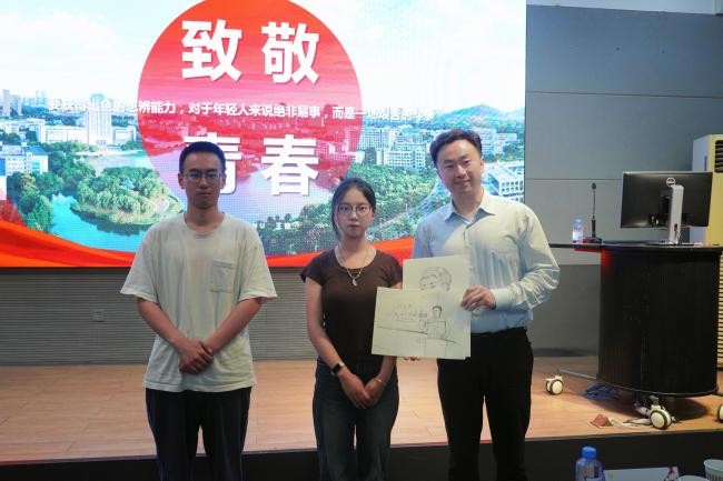 本次党课内容翔实、深入浅出,既全面系统、又直观深刻;既有理论深度、又有实践意义,赢得了在场学生的一致好评。学生们纷纷起立表达着自己内心的感悟,并结合自身的入党之路和学习生活提出思考,王维老师细致、耐心的回应更是让同学们进一步理解了本次党课的深刻内涵,对未来的规划也更加清晰。活动现场,2位学生也为王维老师献上了党课过程中有感而画的主题画作,热烈的气氛将现场推向又一个高潮,在此起彼伏的掌声中,本次党课圆满结束。