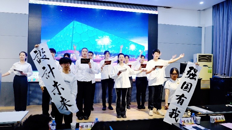 分党校学员代表带来朗诵节目《设计强国强国有我》,“我们是时代的刻绘者,挥翰成风,提笔开拓路的远方;我们是人民的筑梦师,以梦为马,展翅迎接光的来到……”真诚而充满力量感的词句搭配学员们深情的诵读,不仅展示了新时代青年的风采与担当,更传递出了一种强烈的爱国情怀与责任使命,也深刻诠释了设计青年们在新征程上心怀祖国、勇毅前行的坚定信念和奋发向前、追求卓越的理想抱负。