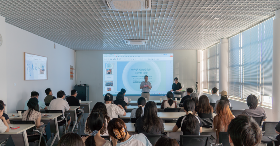 关智民教授以其深厚的学术底蕴和丰富的实践经验,为师生们带来了一场精彩的学术盛宴。他从美国艺术博物馆、拍卖会及展览活动、艺术画廊、当代艺术观念性与时代碰撞等多维度视角出发,深入剖析了美国高等美术教育的创新机制,揭示了当代艺术的最新发展动态和前沿理念。通过一系列标志性的艺术作品和事件,串联起美国当代艺术的发展脉络,展现了当代艺术在社会变迁中的变革。