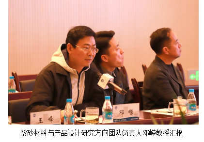紫砂材料与产品设计研究方向的团队负责人邓嵘教授结合研究方向的阶段研究成果、与企业的交流与合作、设计实践与探索等方面的内容进行了汇报。