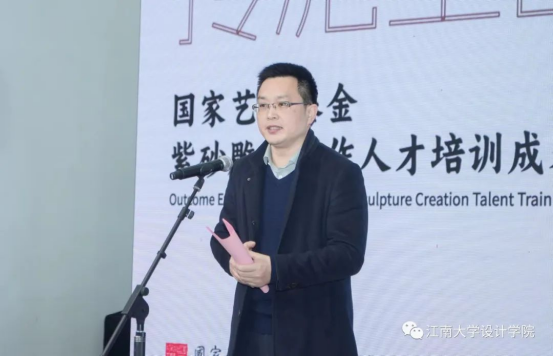 国家艺术基金项目负责人魏洁教授介绍了展览的相关情况和背景,向参与项目培训和与会的嘉宾表示感谢;她表示,本次项目旨在探索新的艺术路径与应用方法,形成从材料技术到雕塑艺术,从工艺表达到雕塑形态,从传统造物到艺术创新的完整谱系,项目通过紫砂雕塑与艺术创新、紫砂雕塑与造物融合、紫砂雕塑与产品艺术三大方向的创新,充分表现紫砂独特的创作语言,诠释当代的审美观念与文化内涵。
