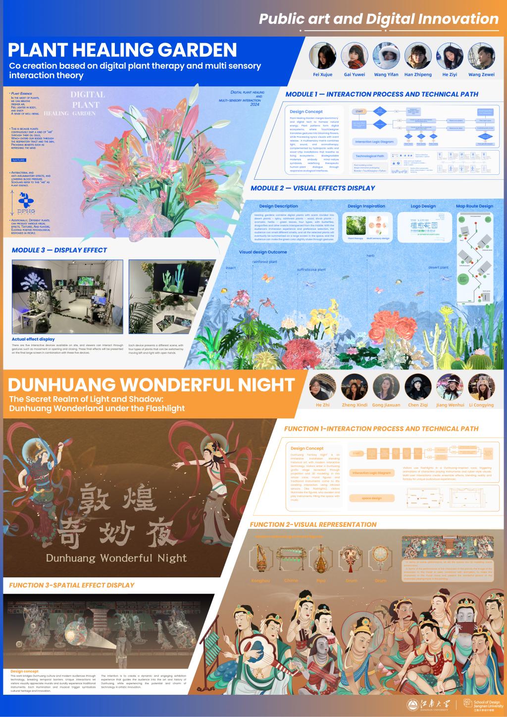 参展。其中获奖作品有:医疗产品与系统设计优秀作品:《MediCruise——ICU场景下的模块化运输及整合系统设计》、《迈乐S-Mile脑卒中智能居家监测训练系统》,服务设计与社会创新优秀作品:《水滴商店》,视觉传达设计优秀作品:《未来食物——明天我们吃什么》、《暇食人烟》、《扁隶宋》,环境系统设计优秀作品:《无锡水情教育基地景观设计》,公共艺术与数字创新方向优秀作品:《植愈花园》、《敦煌奇妙夜》。