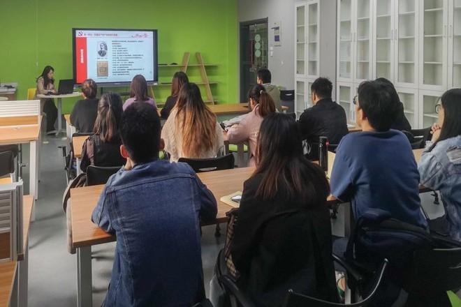 院党委副书记王晖以“共产主义在中国-从五四运动到一大召开”为题为创业党支部和交互党支部全体师生党员讲授党课。她从习近平总书记在纪念五四运动100周年大会上的重要讲话切入,从中国共产党产生的时代背景、中国共产党的诞生早期的艰辛历程、中共一大代表的人生浮沉、对当代学生党员成长的启示四个方面进行讲解,围绕中国共产党成立过程中的关键人物的革命经历为脉络,介绍了中国先进分子从五四运动以全民族的行动激发了追求真理、追求进步的伟大觉醒,到集合在马克思主义旗帜下成立中国共产党的伟大历程。她指出,五四新文化运动是中国人的“伟大觉醒”,中国共产党成立是中国革命新的伟大开端。