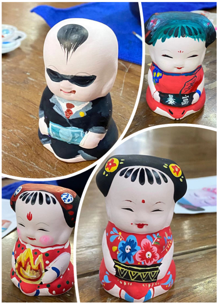 最后一站,师生一行来到惠山泥人厂。在工作人员的带领下,同学们先后参观了惠山泥人厂旧址展览中心和惠山泥人制作厂房。在参观过程中,同学们亲眼见证了非遗文化的魅力。惠山泥人拥有独特的东方美,它们随着社会的进步,不断增添着时代赋予的美学特征,将民间艺术家淳朴的艺术感悟完美地表达出来。参观结束后,同学们到惠山泥人DIY体验室,体验制作惠山泥人。