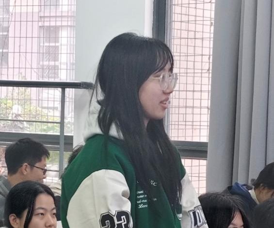 刘佳老师强调,作为一名大学生应该明确自己的学习目标,要有清晰的自我规划,从高中的被动式学习转向积极思考的主动式学习转变。大学生首先要塑造良好的品格,身体和心理健康是首要任务,不可因学习损害身体,心理要积极阳光,要做一个正直、诚实、善良的人,关心并帮助他人,使自己成为一个具有正能量的积极乐观的人。同时,要学好专业知识,通过日常积累、设定榜样、互相促进等方法提升自我综合素质和长远的学习能力。此外,培养交际能力在大学期间也极为重要。可以通过班集体成员间的共同进步、同学之间的良好互动、兴趣相投的同学共同组队参赛或参加社会实践等方式,积极拓展自己的社交能力。另外,刘老师还鼓励大家应该多读书,避免仅从网络摄取碎片化知识的现象,应该从各类书目中摄取系统性的、广泛的、有深度的知识营养。