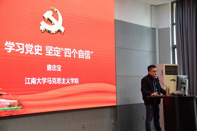 邀请马克思主义学院唐忠宝教授以《学习党史,坚定“四个自信”》为主题为全院教职工进行了一场生动的党史辅导。