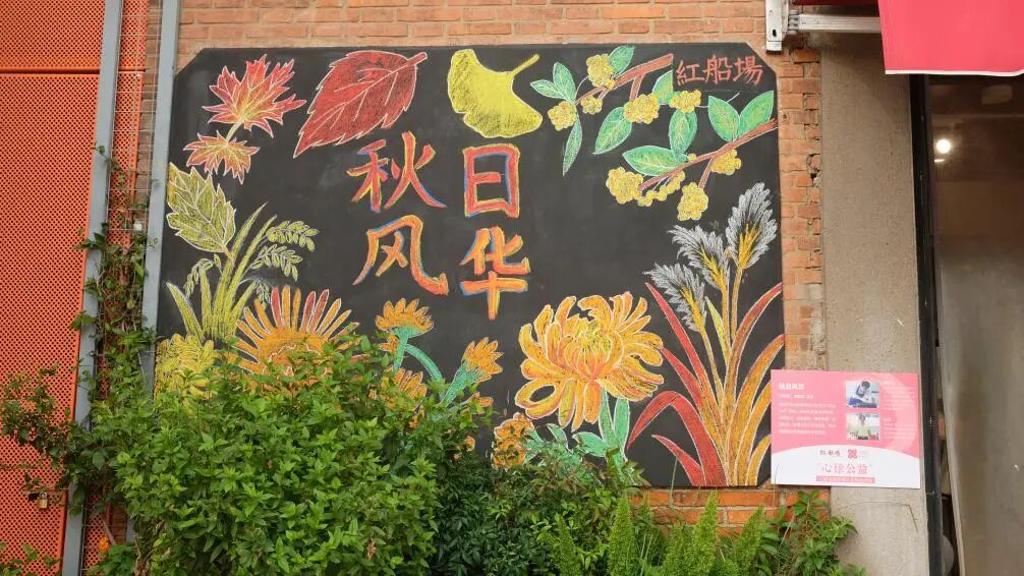 画笔在黑板上移动,笑声在现场回荡。路过的行人纷纷停下脚步拿出手机拍照记录,不知不觉间,原本空白的黑板被装点得满是秋韵 ,每一处细节都藏着爱与创意。