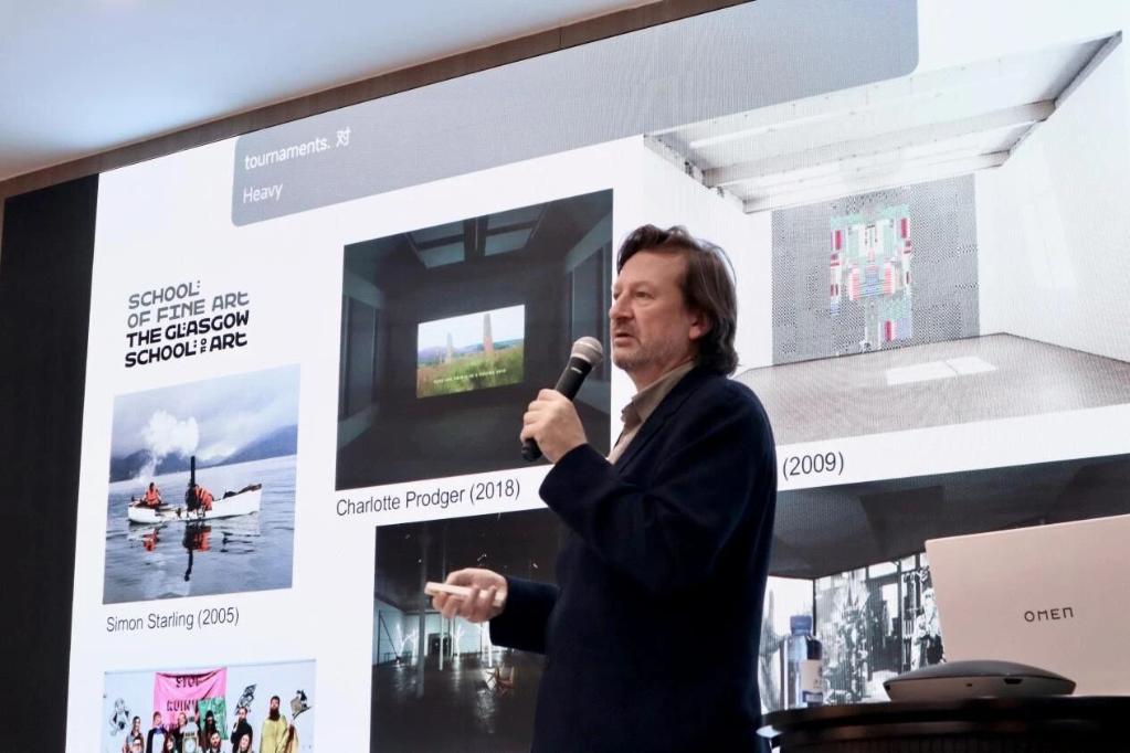 讲座过程,Gordon Hush教授系统介绍了格拉斯哥艺术学院自1845年建校以来的深厚底蕴,以及2023年创新技术学院成立后取得的突破性进展。作为QS世界排名前列的知名设计院校,该校以 “发明、创新、担当” 为核心教育理念,不断推动设计教育向前发展。