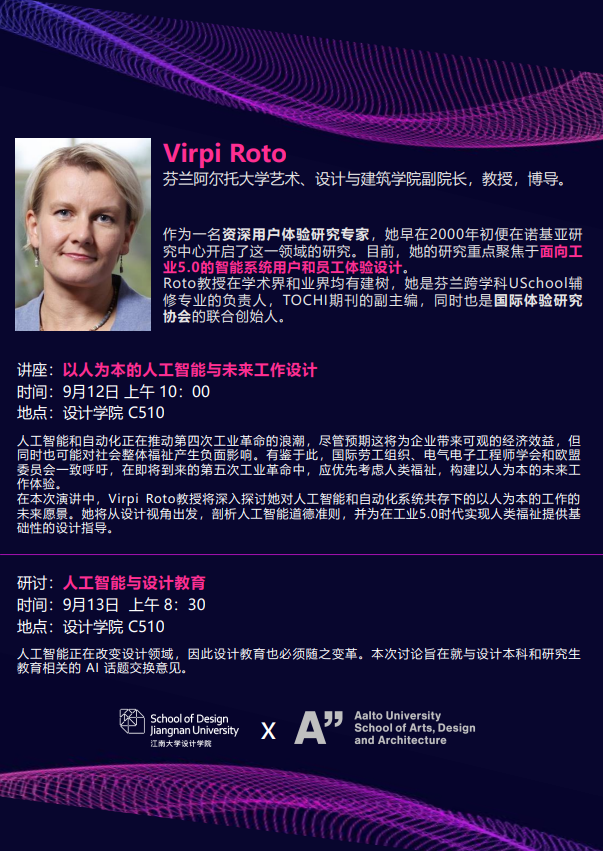 Virpi Roto,芬兰阿尔托大学艺术、设计与建筑学院副院长,教授,博导。