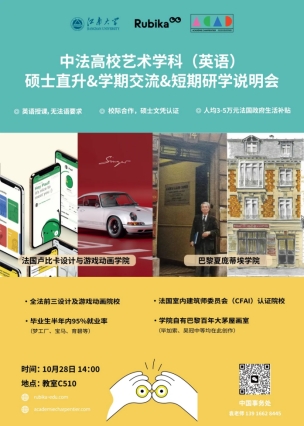 讲座主题:中法高校艺术学科(英语)硕士直升&学期交流&短期研学说明会