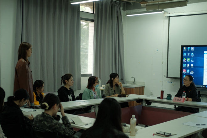 梁老师以APEC的服装设计经历为例,与服装专业本科生党员分享了在艺术创作中如何将深厚博大的传统文化、丰富多彩的民族文化融入,团队成员如何在国家任务面前发挥党员先锋模范作用,以扎实的工作作风与忘我的奉献精神创作了多套国家领导人服饰。她表示,习近平总书记在4月19日考察清华大学美术学院时,多次提到一个有温度的字眼——“美”。她勉励同学们除了时尚创新与专业技能外,应当牢记总书记寄语与嘱托,增强文化自信和家国情怀,以美为媒,用设计的力量让中国变得更“美”,让世界变得“美美与共”,推动国际文化交流。