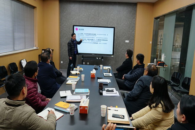 院党委书记邱建平以《新时代新征程凝心聚力争创一流学科》为题,围绕2018年以来学院党委、党建开展的主要工作,从履行党建责任、基层党建进展与成效、思想政治工作开展、问题及改进思路四个方面做了总体情况介绍。学院按照学校党政工作要点部署和要求,以班子建设为关键,成为政治引领的火车头;以中心工作为目标,成为纲举目张的渔码头;以支部建设为重点,成为坚守阵地的桥堡头;以党员建设为基础,成为德艺双馨的神捕头。专心学习,理论学习精通化,实现因精通而成师;用心工作,工作方法精细化,实现因精细而成实;贴心服务,服务对象精准化,实现因精准而成效,切实发挥好基层党组织的政治核心作用。