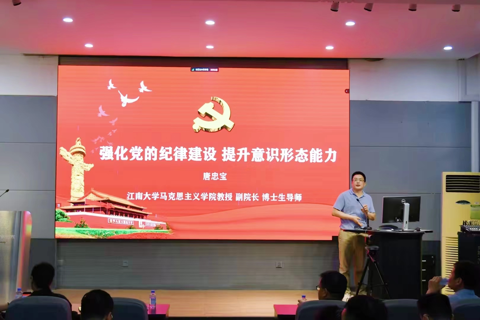 王维青在总结讲话中对唐忠宝教授内涵丰富又生动活泼的讲座表示感谢,他指出,全体师生党员要深入学习贯彻习近平新时代中国特色社会主义思想,摒弃历史虚无主义,厘清意识形态,饱含家国情怀,传承中华血脉,要立足本职专业努力学习,提高师生党员的纪律意识,以更加严明的纪律、更加优良的作风迎接新的风险和挑战,切实用纪律建设的实际成效在服务强国建设、民族复兴中发挥积极作用,为写好“教育强国、江南何为”的时代答卷贡献力量。